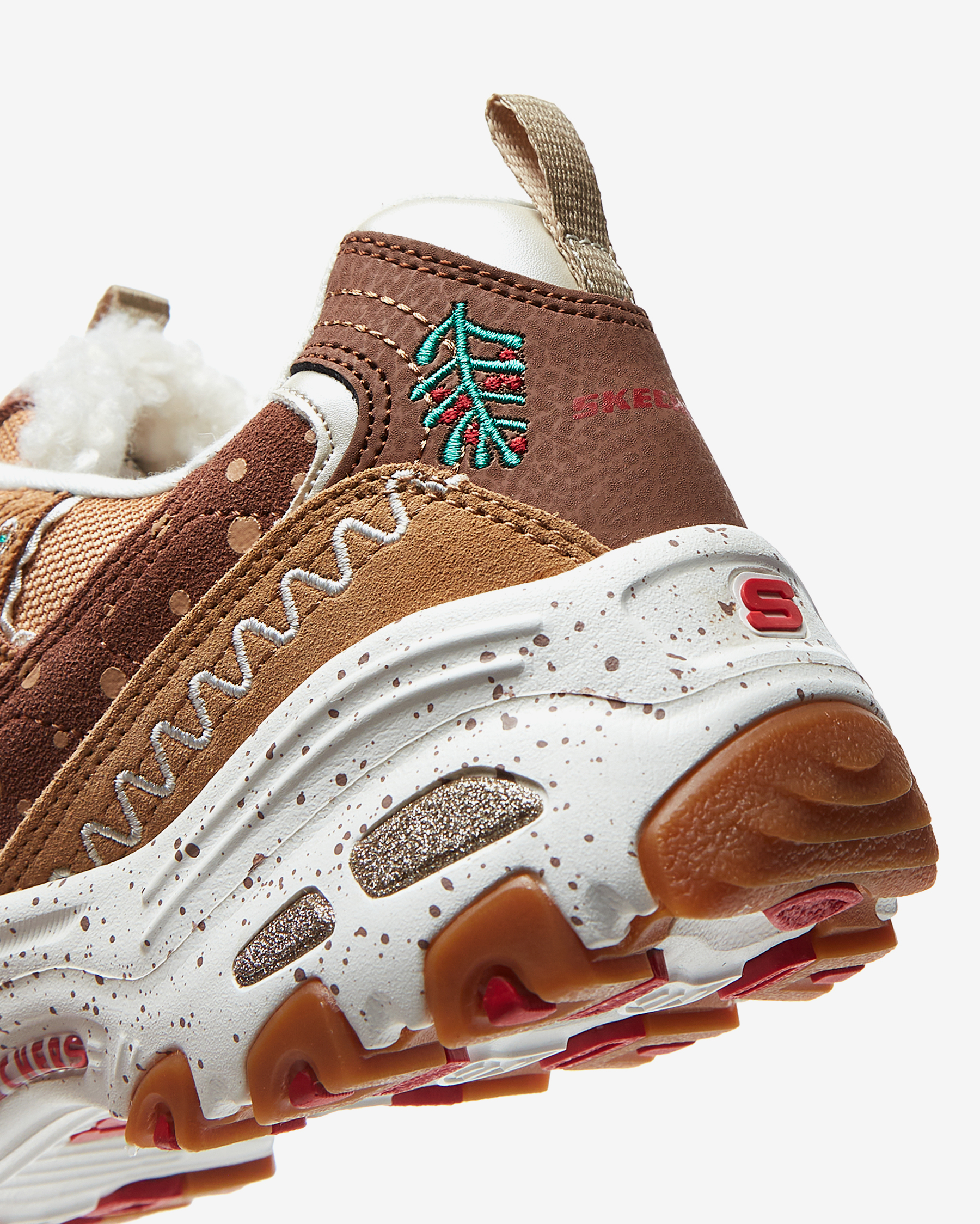• Skechers D'Lites® - Gingerbread kadın spor ayakkabı ile festival sezonunu adımlarınıza taşıyın. Yılbaşı ve sonbahar temasına uygun olarak Gingerbread kurabiye adam tasarım temalı D'lites sneakers sıcak renk tonlarıyla da cezbedici bir sneakers modelidir. Sayada süet deri ve file kumaş bir arada kullanılmış olup nakışlı süslemelere sahiptir. Saya kumaşı ile aynı tonlarda benekli taban tasarımı ile ayakkabının tasarımında bütünlük sağlanmıştır. Skechers D'Lites® - Gingerbread kadın spor ayakkabının dil kısmında ayağınızı sıcak tutması için suni peluş kullanılmıştır. Dış tabanında kullanılan kauçuk malzeme her türlü zeminde mükemmel bir şekilde tutuş sağlayarak gün boyu dengeli ve güvenli adımlar atmanızı sağlar.Skechers D'Lites® - Gingerbread kadın spor ayakkabı eğlenceli ve iddialı tasarımıyla bu kış gardırobunuza renk katmanızı sağlayacak.