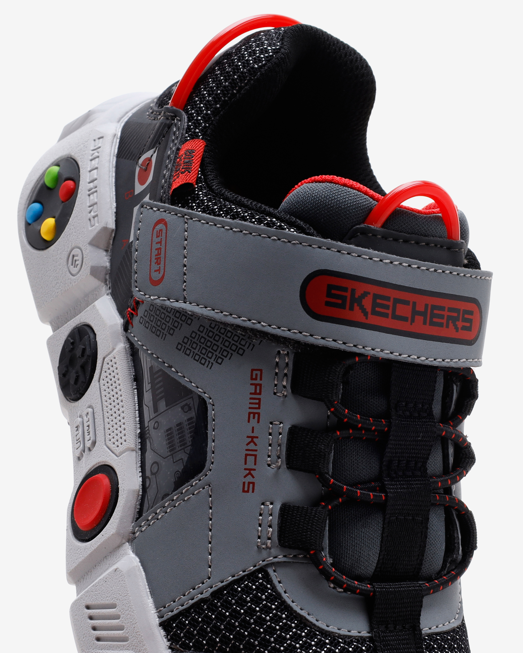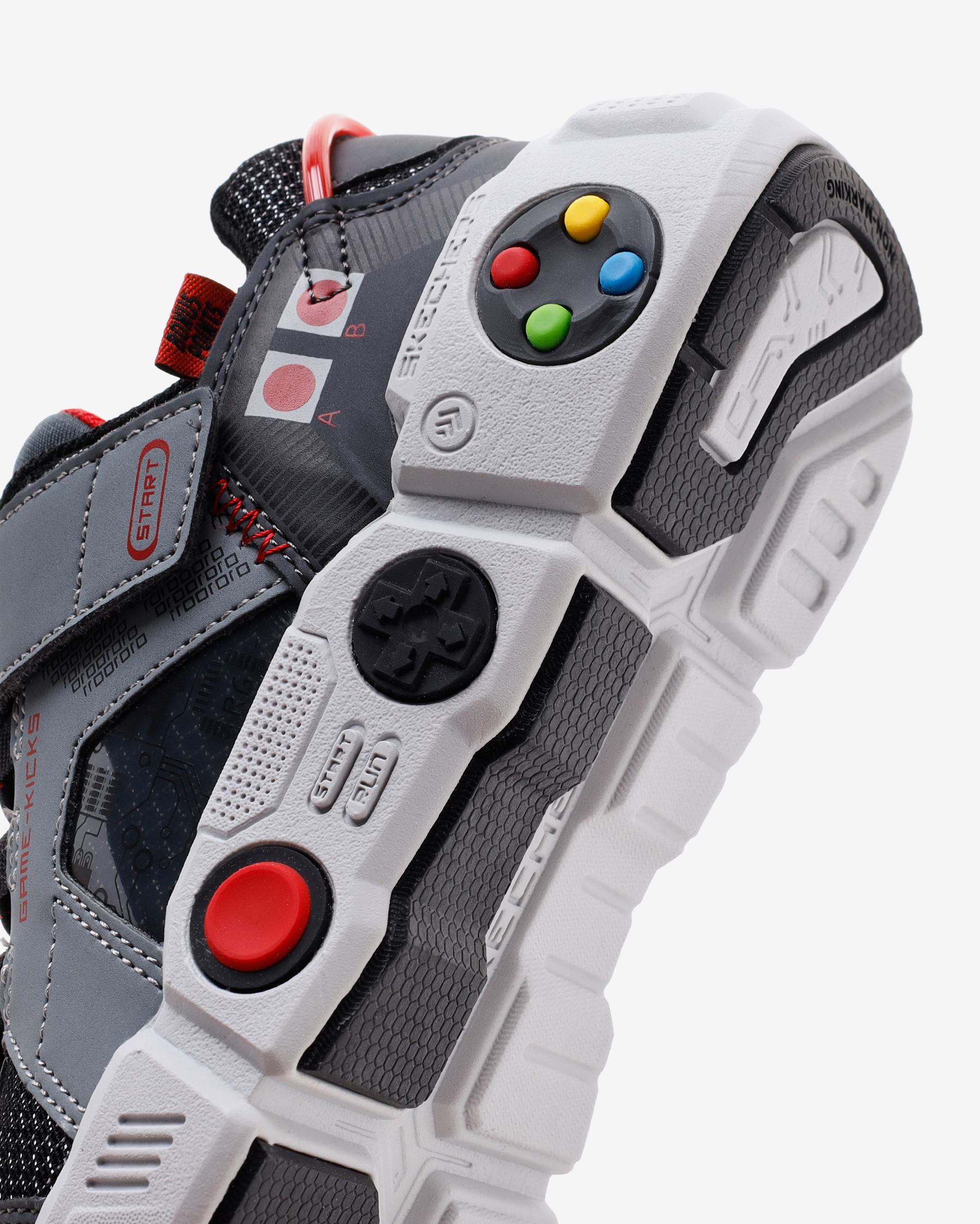 Bilgisayar oyunlarından ve oyun konsollarından ilham alınarak tasarlanan Game Kicks: Gametronix erkek çocuk spor ayakkabı konforu ile çocuğunuzun favori ayakkabılarından biri olacak. Sayasında kullanılan atletik file ve sentetik malzemeler üzerinde bulunan oyun desenleri ile tamamlanmıştır. Esnek, hafif ve hava alabilen yapısı sayesinde bu saya çocuğunuzun ayaklarını gün boyunca rahat ettirecek bir yapıdadır. Esnek bağcıkları ve cırt cırtlı kapanışı sayesinde giyip çıkartma kolaylığı sağlayan Game Kicks: Gametronix erkek çocuk spor ayakkabının taban kısmında da oyun konsollarından ilham alınarak eklenen kontrol düğmeleri yer alır. İç tabanında bulunan Air Cooled Memory Foam sayesinde gün boyunca çocuğunuzun ayaklarını yumuşacık hissettirir. Dış tabanında 2,5 cm’lik bir topuk yer alan Game Kicks: Gametronix erkek çocuk spor ayakkabının üstün yer tutuşu sağlayan tabanı sayesinde çocuğunuz oyun oynarken kendisini daima dengeli ve güvende hisseder.