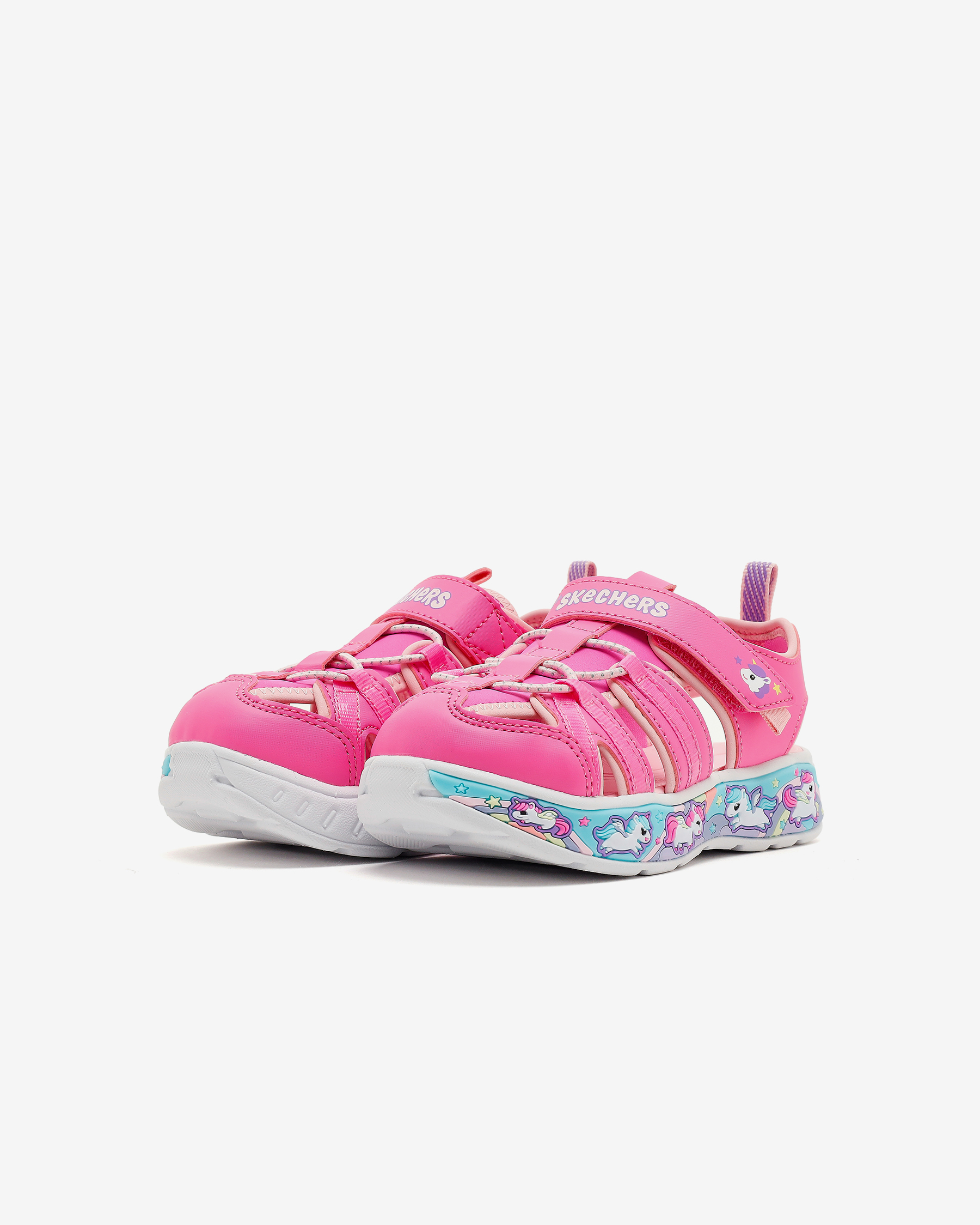 • Skechers Play Scene Splash - Cute Crew kız çocuk sandaletiyle minik yavrunuzun tüm gün gülümsemesini sağlamak artık çok kolay! Bu şık ve eğlenceli tasarım, hem görsel zenginlik hem de konfor sunarak önemli bir çocuk giyim parçası haline geliyor. Yastıklı konforlu iç tabanı, uzun süreli kullanımlarda bile ayakları rahat tutarken, okyanus temalı grafiklerle süslenmiş önemli yastıklama sağlayan orta tabanı sayesinde çocuklarınız adım attıkça eğlenceli bir okyanus macerasına atılır gibi hissedecek. Sandalet, yer tutuşu sağlayan ve esnek yapısıyla hareket özgürlüğü sunan dış tabanı sayesinde, çocuklarınızın oyun oynarken kayma riski minimuma indirilmiştir. Temizliği de oldukça kolay olan Skechers Play Scene Splash - Cute Crew sandaleti, makinede yıkanabilir özelliği ile ebeveynlerin işini de kolaylaştırmaktadır. Rahat, şık ve eğlenceli bir yürüyüş deneyimi için bu sandaleti tercih edin!