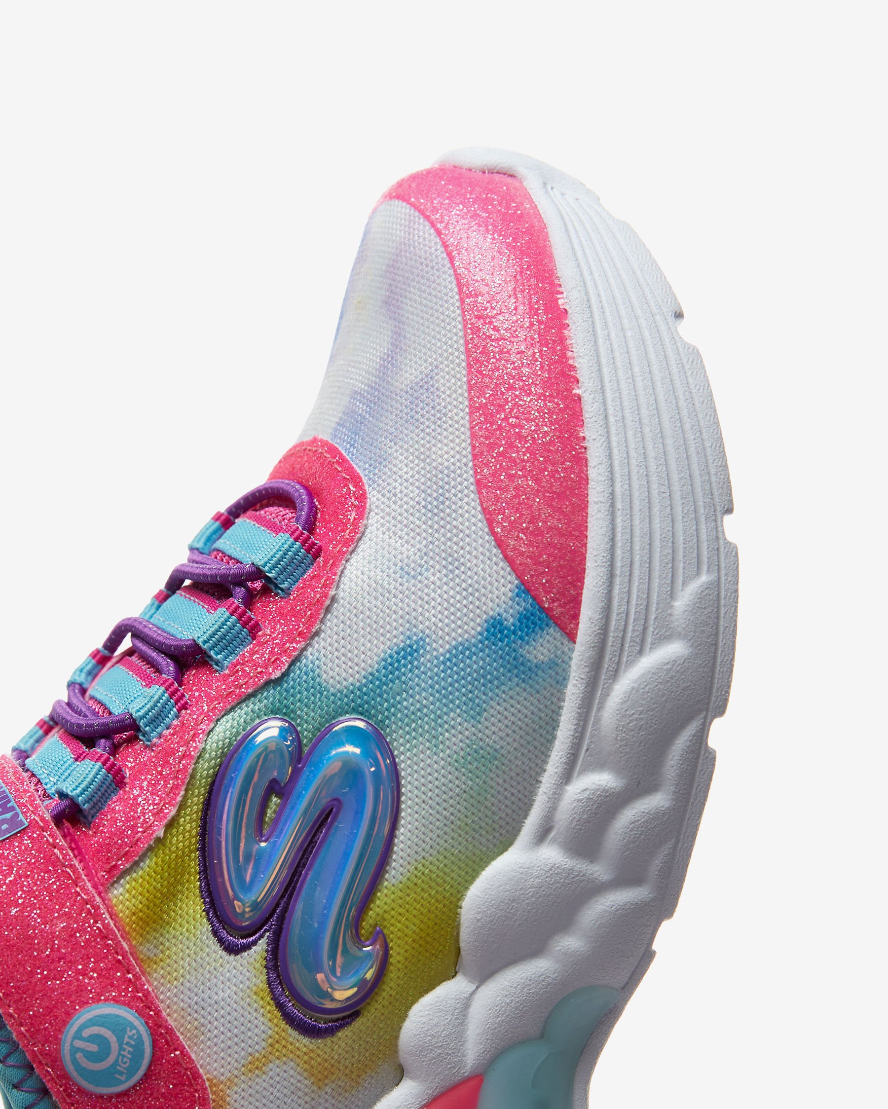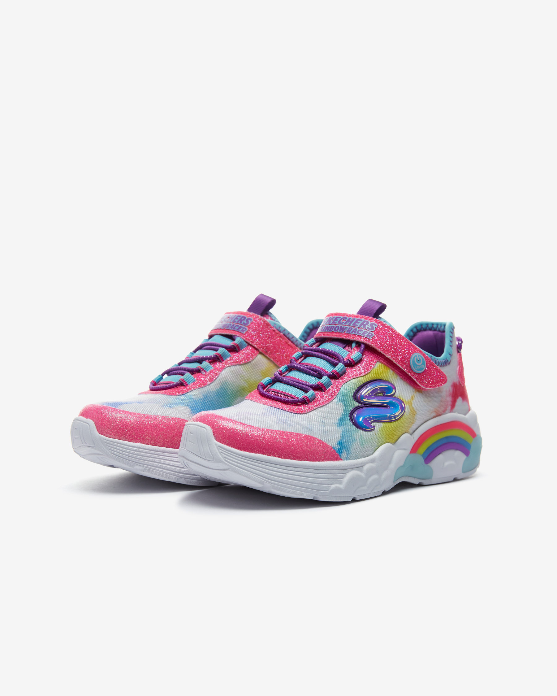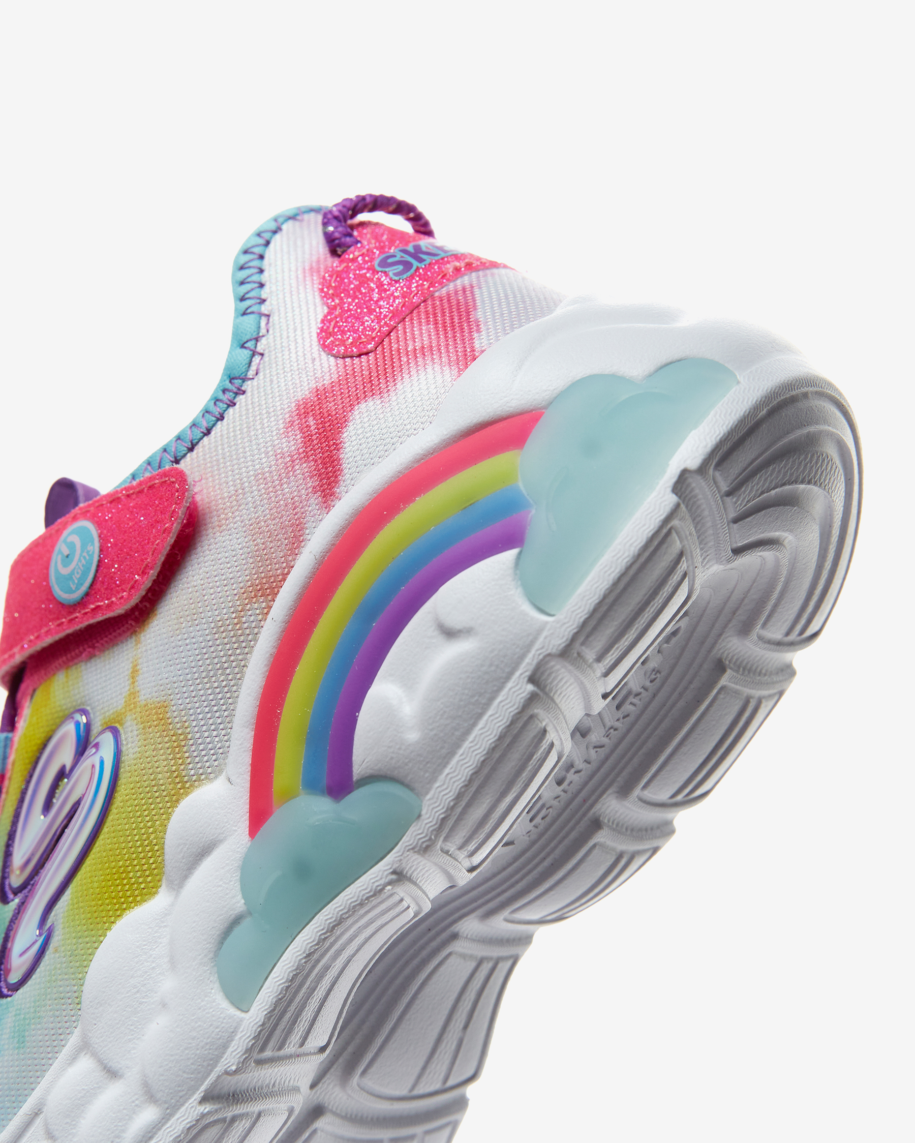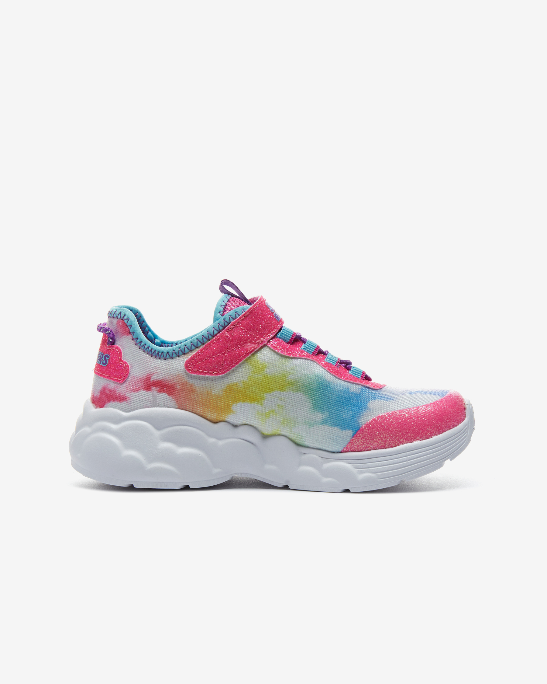 Skechers S Lights: Rainbow Racer kız çocuk spor ayakkabısı ile gökkuşağı ve bulutlara ulaşmak çok kolay. Sayasında kullanılan atletik file kumaş esnek, hafif, simli ve bulut temalı deseniyle yumuşacık bir kumaştır. Atletik file kısımları sayesinde gün boyunca hava alarak çocuğunuzun ayaklarının kuru ve ferah kalmasına yardımcı olan sayasının üzerinde kolayca giyilip çıkartılmasını mümkün kılan cırt cırtlı kapanışı yer alır. Skechers S Lights: Rainbow Racer kız çocuk spor ayakkabısı gökkuşağı ve bulut temalı tasarımını ayakkabının her yerinde hissettirirken iç tabanı yüksek yastıklamalı Air Cooled Memory Foam ile donatılmıştır. Bu iç taban sayesinde çocuğunuz koşup oynarken ayaklarını yumuşacık hisseder. Skechers S Lights: Rainbow Racer kız çocuk spor ayakkabısının orta tabanı ise esnek ve hafif olmasının yanı sıra içinde bulunan ışıkları sayesinde topuk kısmında bulunan gökkuşağını aydınlatır. Çocuğunuz her adım attığında ışıl ışıl yanan bu gökkuşağı ayakkabının tasarımına sevimli bir hava katar.Yer tutuşu konusunda tüm beklentilerini karşılayan Skechers S Lights: Rainbow Racer kız çocuk spor ayakkabısının esnek ve dayanıklı dış tabanı çocuğunuza kendisini dengede ve güvende hissettirir.