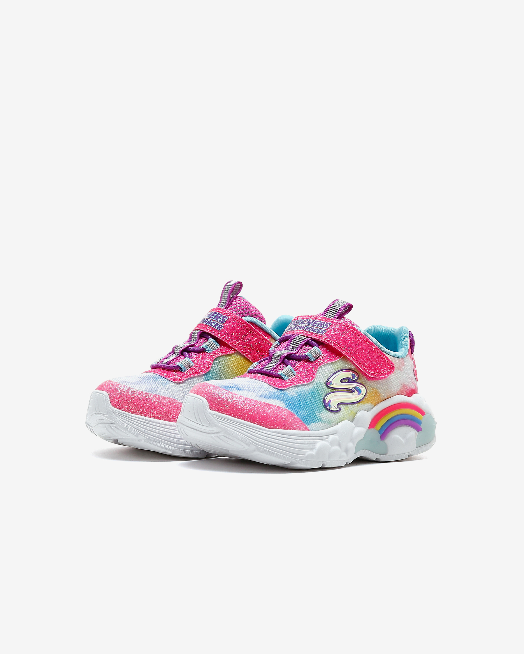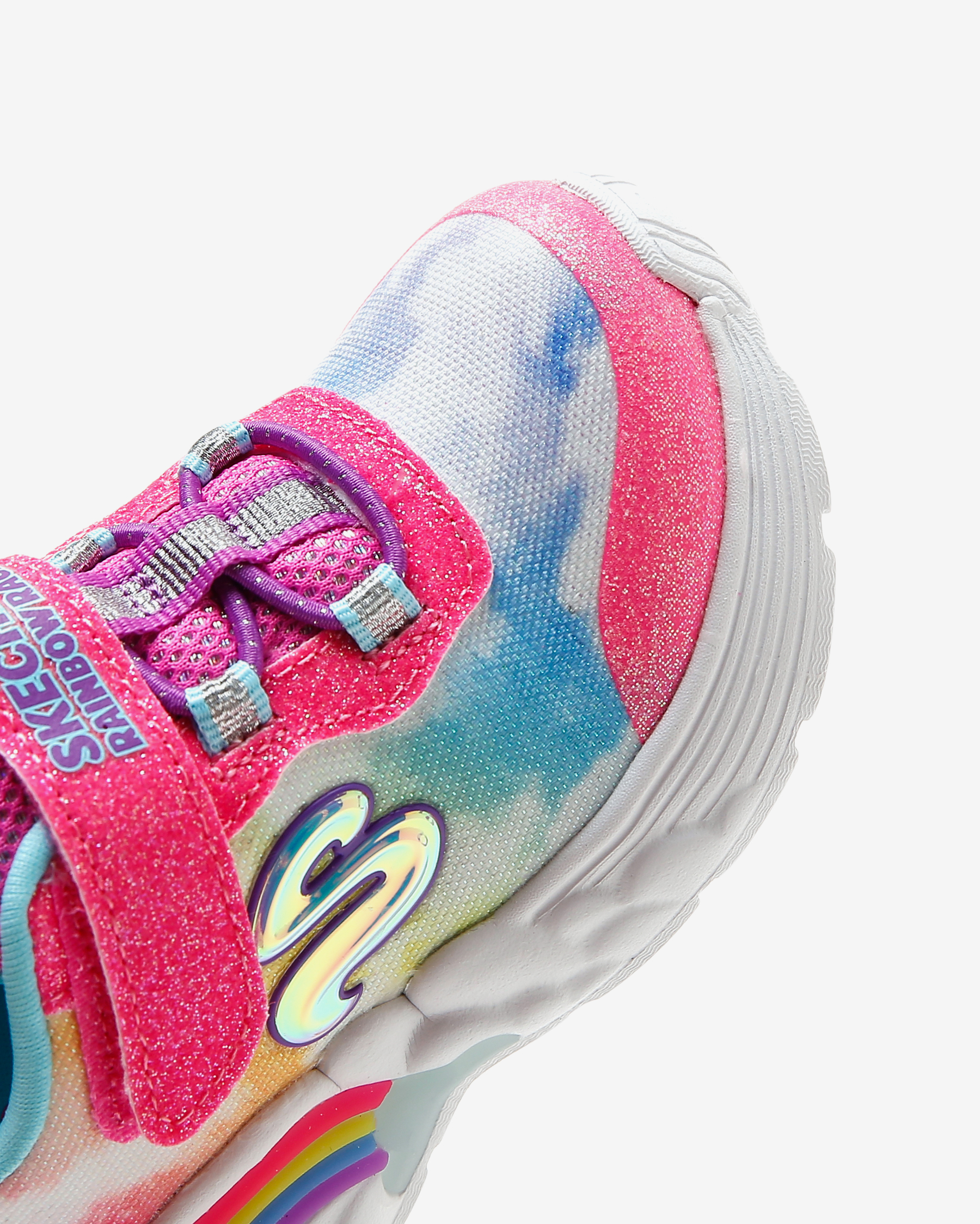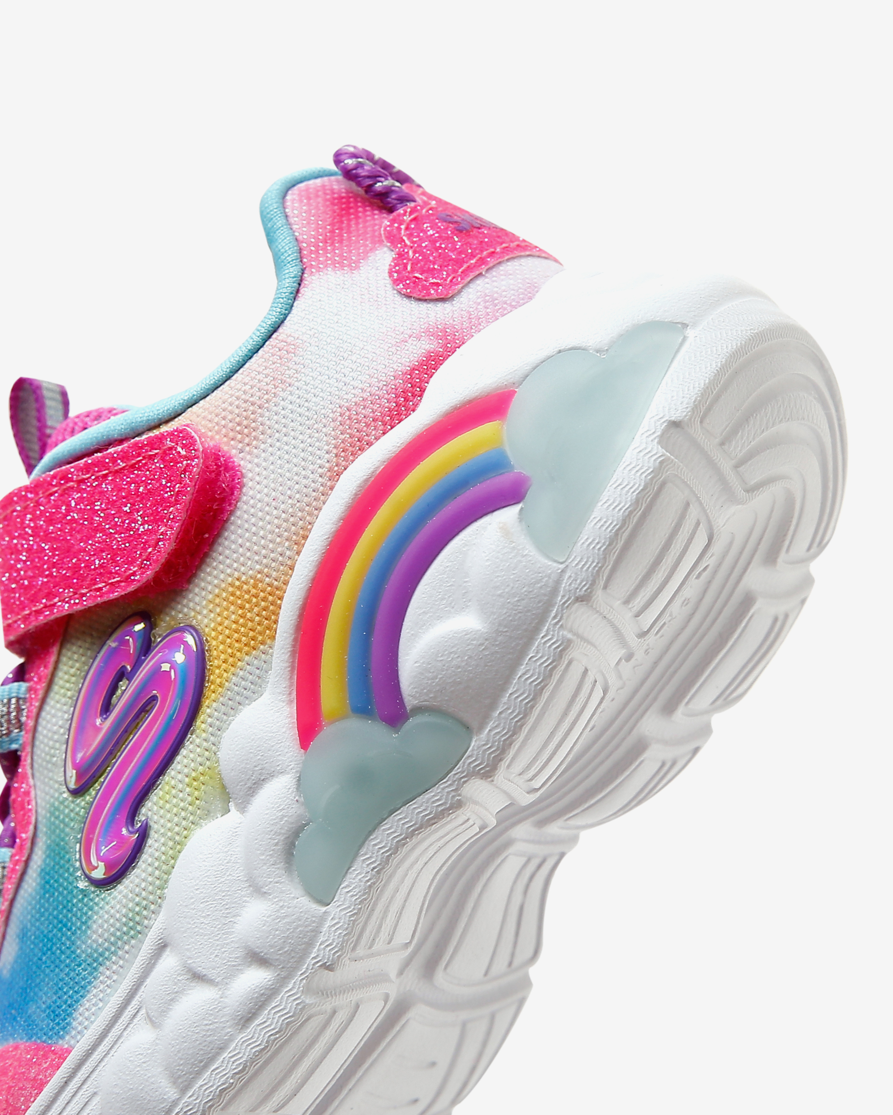 Rainbow Racer Lights kız çocuk spor ayakkabısı, her adımda gökkuşağı ile yarışan küçük hanımların favorisi. Sayasında kullanılan atletik mesh kumaş esnek, hafif, simli ve yumuşacık bir kumaştır. Atletik file kısımları sayesinde gün boyunca hava alarak çocuğunuzun ayaklarının kuru ve ferah kalmasına yardımcı olan sayasının üzerinde kolayca giyilip çıkartılmasını mümkün kılan cırt cırtlı kapanışı yer alır. Gökkuşağı ve bulut temalı tasarımını ayakkabının her yerinde hissettiren Rainbow Racer Lights kız çocuk spor ayakkabısının iç tabanı yüksek yastıklamalı Air Cooled Memory Foam ile donatılmıştır. Bu iç taban sayesinde çocuğunuz koşup oynarken ayaklarını yumuşacık hisseder. Rainbow Racer Lights ayakkabının orta tabanı ise esnek ve hafif olmasının yanı sıra içinde bulunan ışıkları sayesinde topuk kısmında bulunan gökkuşağını aydınlatır. Çocuğunuz her adım attığında ışıl ışıl yanan bu gökkuşağı ayakkabının tasarımına sevimli bir katkı sunar. Yer tutuşu konusunda tüm beklentilerini karşılayan Rainbow Racer Lights ayakkabının esnek ve dayanıklı dış tabanı çocuğunuza kendisini dengede ve güvende hissettirir.