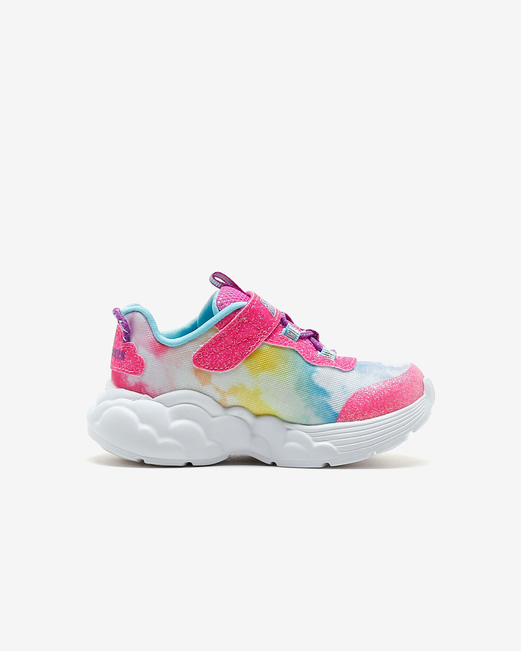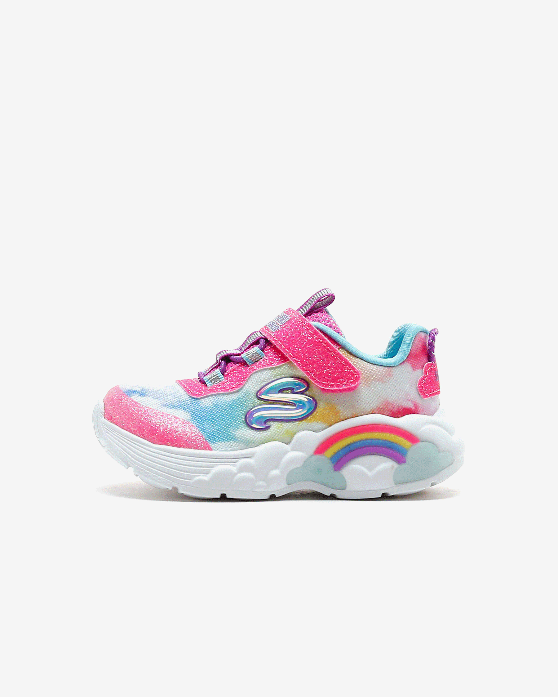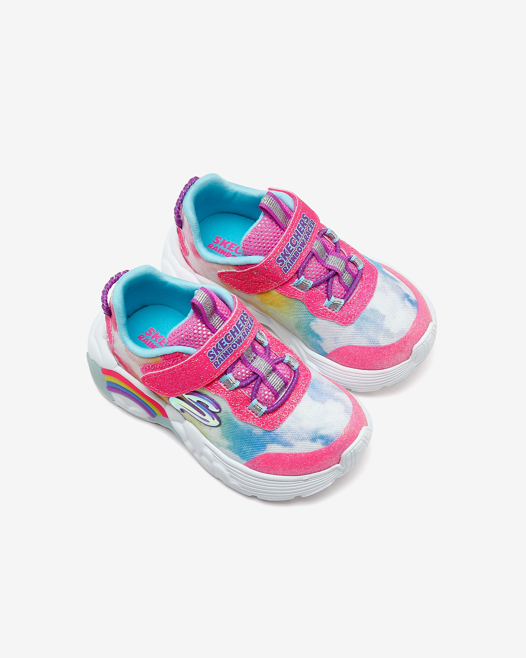 Rainbow Racer Lights kız çocuk spor ayakkabısı, her adımda gökkuşağı ile yarışan küçük hanımların favorisi. Sayasında kullanılan atletik mesh kumaş esnek, hafif, simli ve yumuşacık bir kumaştır. Atletik file kısımları sayesinde gün boyunca hava alarak çocuğunuzun ayaklarının kuru ve ferah kalmasına yardımcı olan sayasının üzerinde kolayca giyilip çıkartılmasını mümkün kılan cırt cırtlı kapanışı yer alır. Gökkuşağı ve bulut temalı tasarımını ayakkabının her yerinde hissettiren Rainbow Racer Lights kız çocuk spor ayakkabısının iç tabanı yüksek yastıklamalı Air Cooled Memory Foam ile donatılmıştır. Bu iç taban sayesinde çocuğunuz koşup oynarken ayaklarını yumuşacık hisseder. Rainbow Racer Lights ayakkabının orta tabanı ise esnek ve hafif olmasının yanı sıra içinde bulunan ışıkları sayesinde topuk kısmında bulunan gökkuşağını aydınlatır. Çocuğunuz her adım attığında ışıl ışıl yanan bu gökkuşağı ayakkabının tasarımına sevimli bir katkı sunar. Yer tutuşu konusunda tüm beklentilerini karşılayan Rainbow Racer Lights ayakkabının esnek ve dayanıklı dış tabanı çocuğunuza kendisini dengede ve güvende hissettirir.