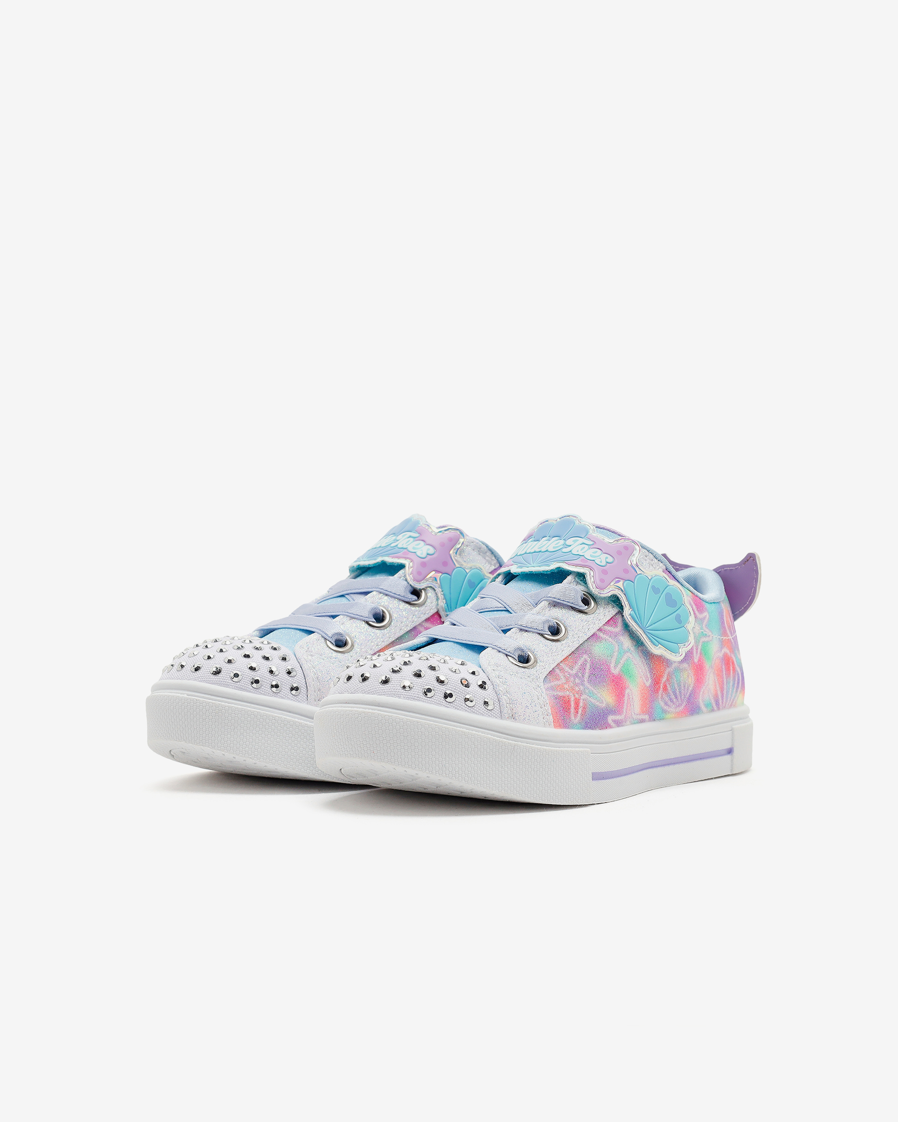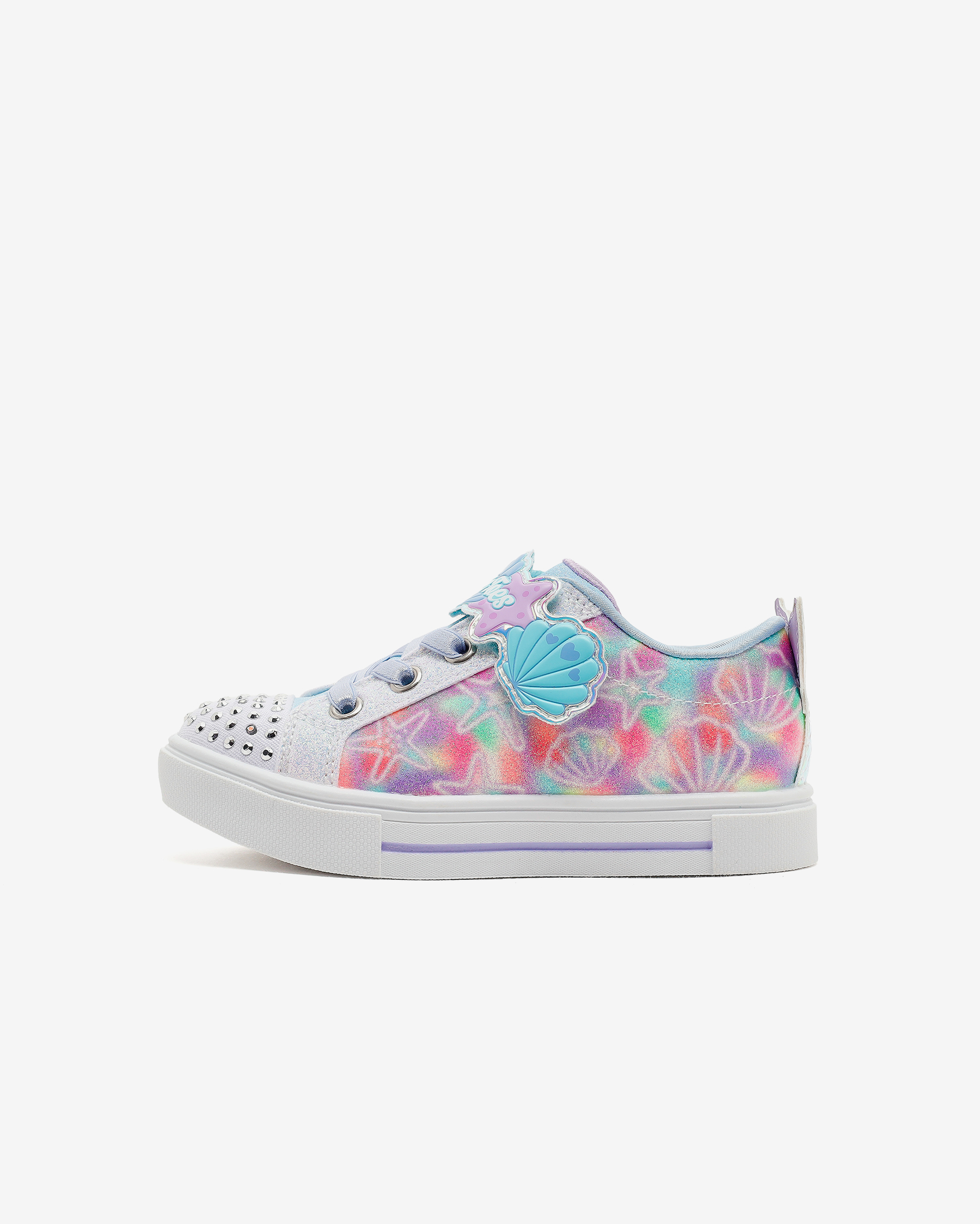 • Skechers Twinkle Toes: Twinkle Sparks - Underwater Magic kız çocuk ışıklı spor ayakkabı ile büyülü deniz kabuğu stilinde kıyıları keşfedin. Yastıklı, konforlu iç tabana sahip olan bu ayakkabılar, tabanda doğru şekilde ve doğru noktalara yastıklama yaparak her adımda yastıklara basıyormuş gibi hissetmelerini sağlar. Darbe emici vulkanize orta tabanı, zorlu yüzeylerde bile çocukların rahatça yürümelerini sağlar. dış tabanı, ayakkabının her türlü yüzeyde kaymasını önleyerek güvenli bir yürüyüş deneyimi sunar. Skechers'ın kişiye özel uyum için tasarladığı, kolay giyilip çıkarılabilen uyarlanabilir kapatma özelliği sayesinde, çocuklar ayağını kullanarak bağımsız bir şekilde ayakkabılarını giyebilirler. Üst kısmı kanvas saya, deniz kabuğu deseni ve ayarlanabilir cırt cırt bantlıdır, bu da pek çok farklı kıyafet ile kombinlenmesine olanak tanır.