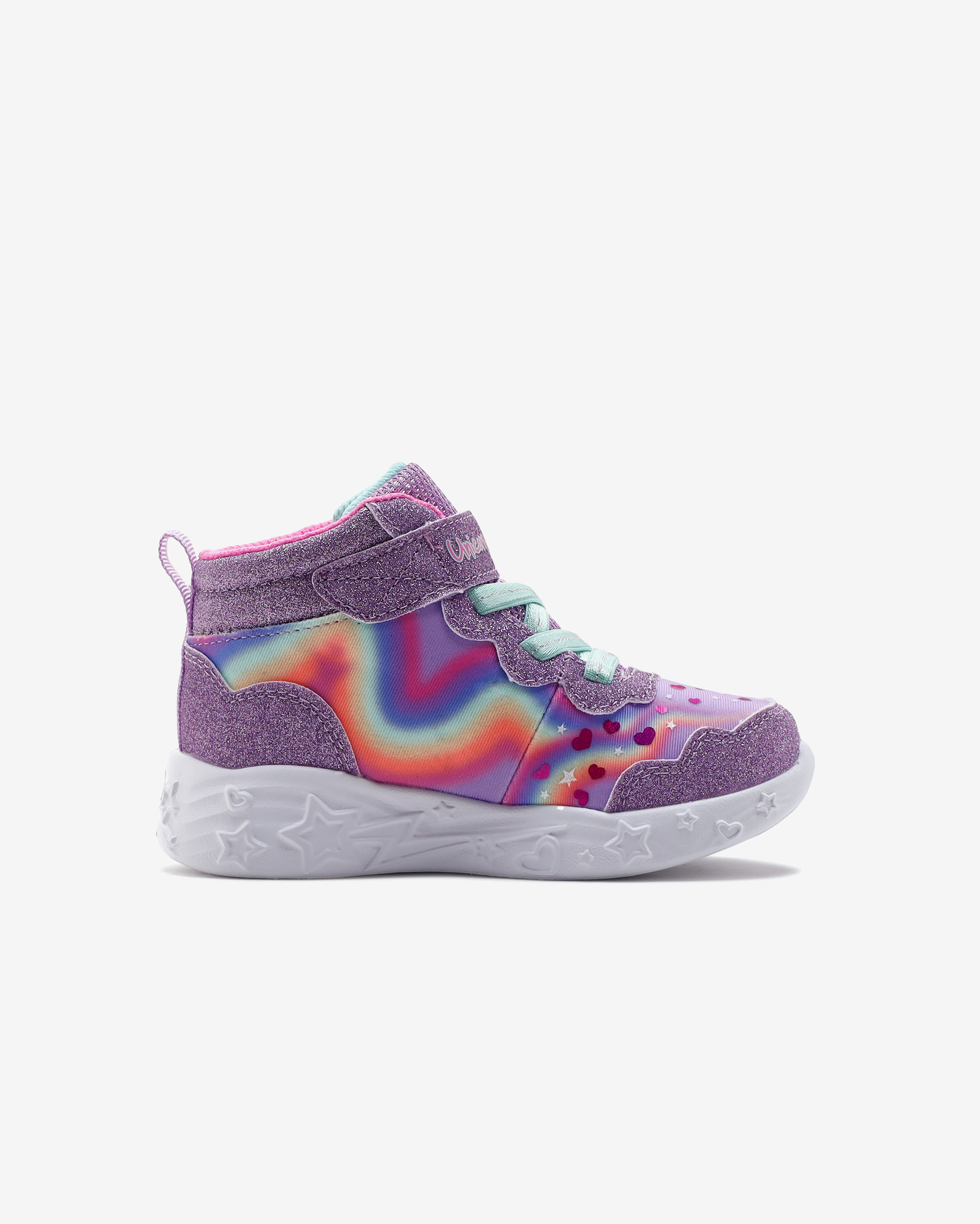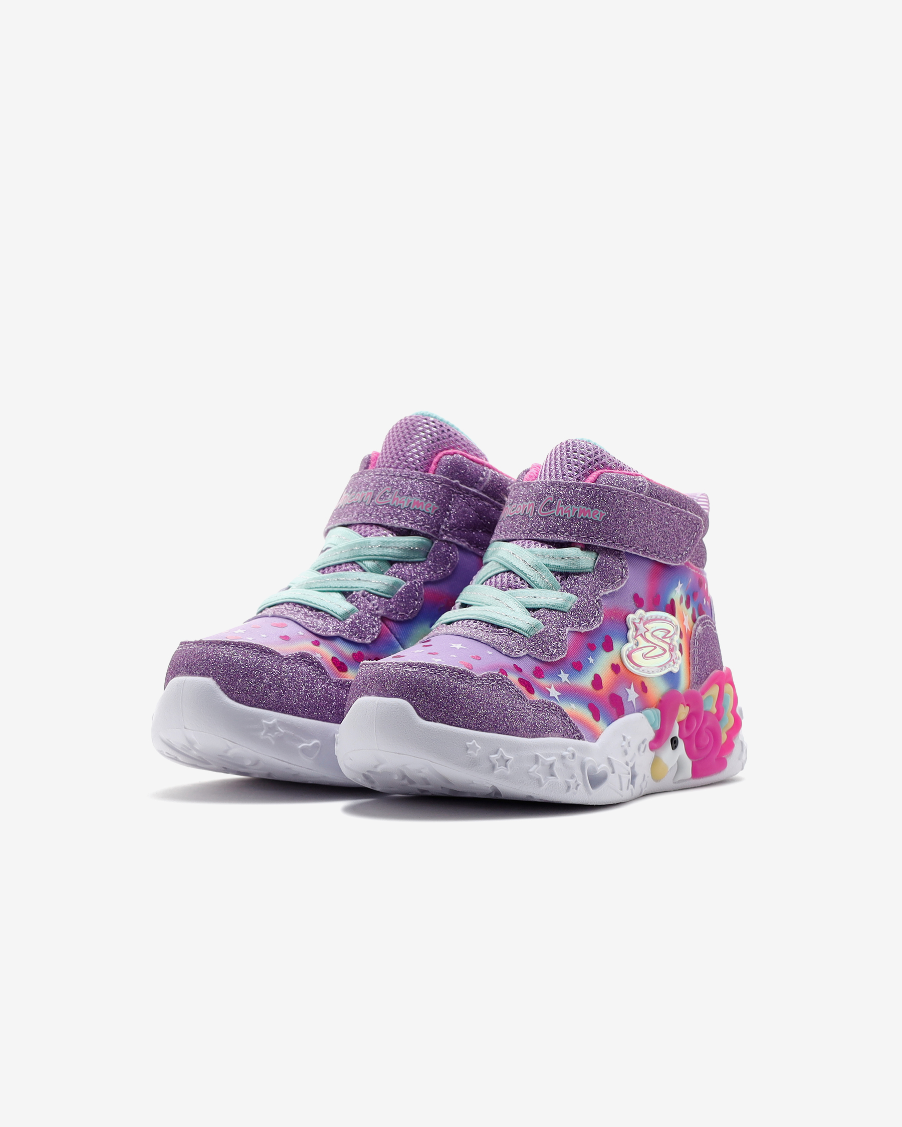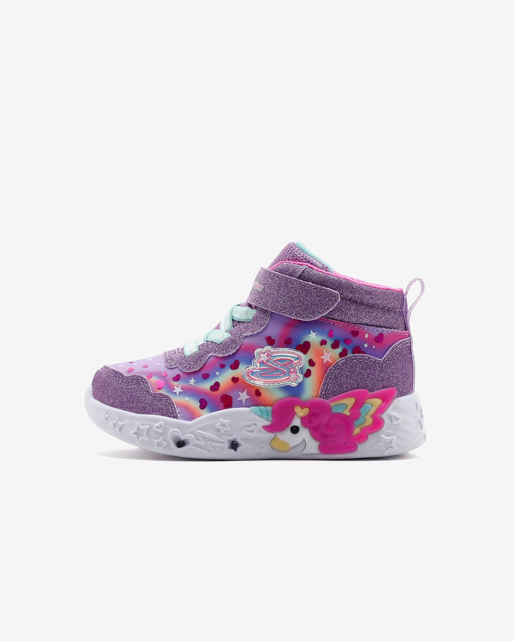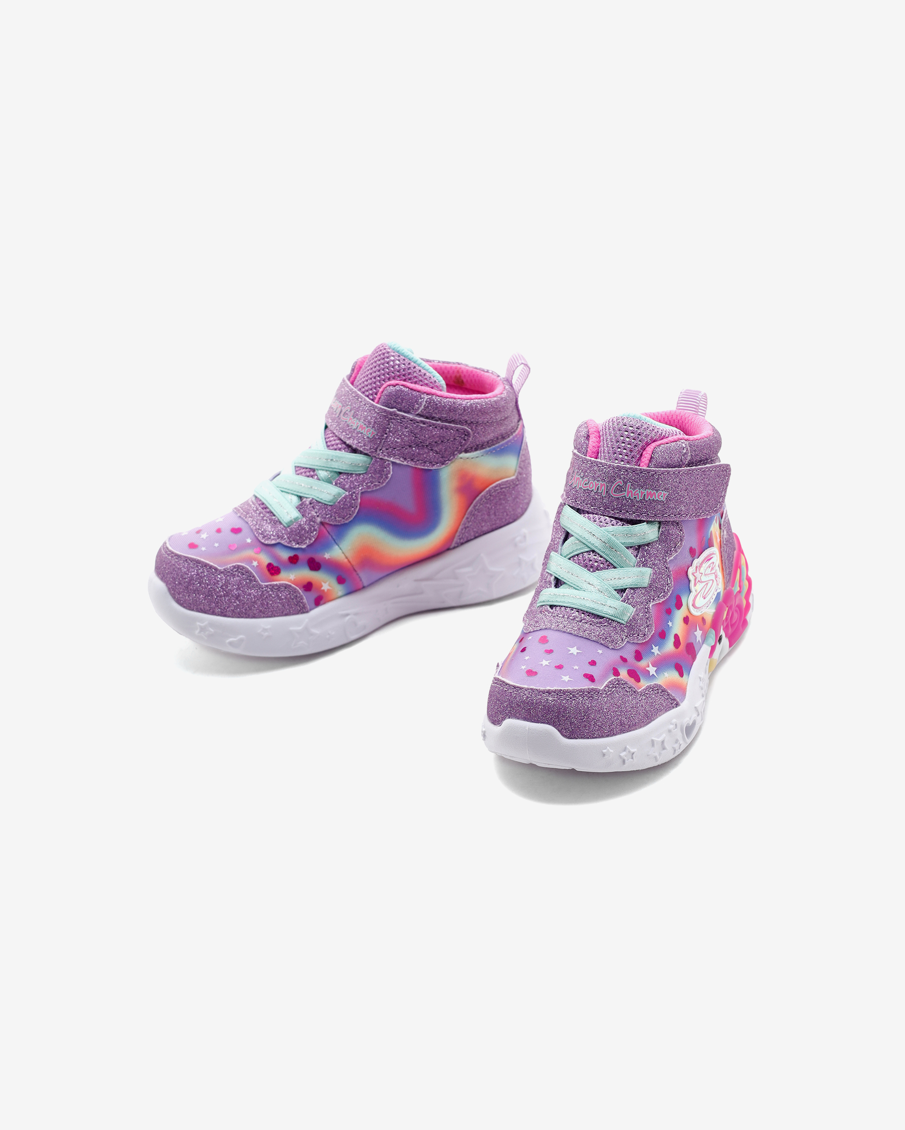 Skechers Unicorn Charmer - Lil Magical kız çocuk ışıklı bot ile çocuğunuz adımlarını attıkça ışıldasın. Bu ışıklı tasarım, yıldız folyo baskılı gölgeli parlak ağ üst kısma, ışıklı şekillendirilmiş tek boynuzlu at orta tabana ve yastıklı, konforlu iç tabana sahiptir. İç tabanı özel bir yastıklama teknolojisi içerir, bu yastıklama teknolojisi sayesinde çocuğunuzun ayaklarını her adımda yastıklayarak darbe etkilerini minimum seviyede hissetmesini sağlar. Orta ve iç taban her adımda darbe etkisini emerek çocuğunuzun bunu hissetmemesini sağlar. Çocuğunuz adeta bulutlarda yürüyormuş gibi rahat eder. Skechers Unicorn Charmer - Lil Magical kız çocuk ışıklı botun orta tabanında göz kamaştıran unicorn kabartması bulunur.