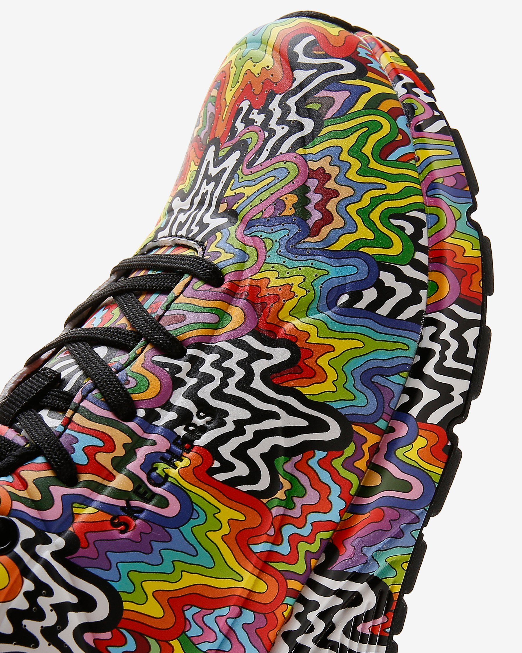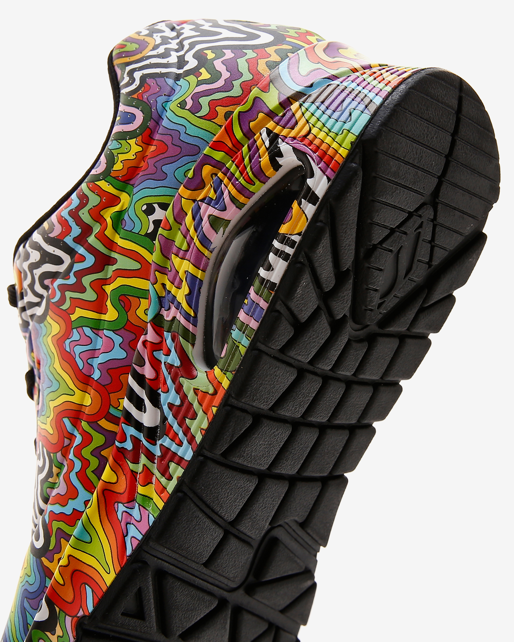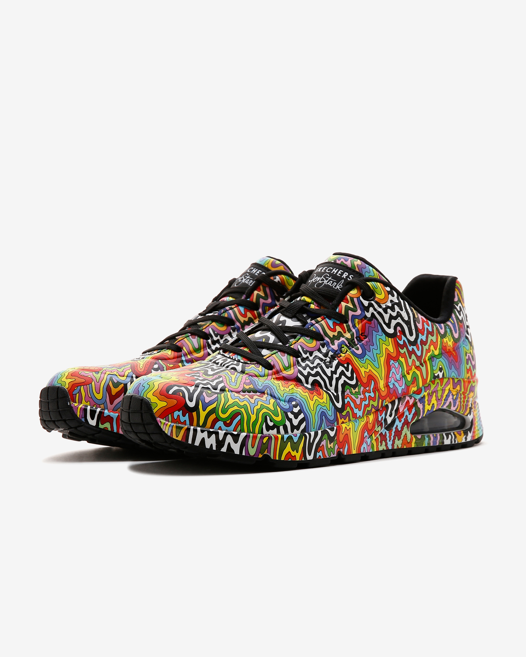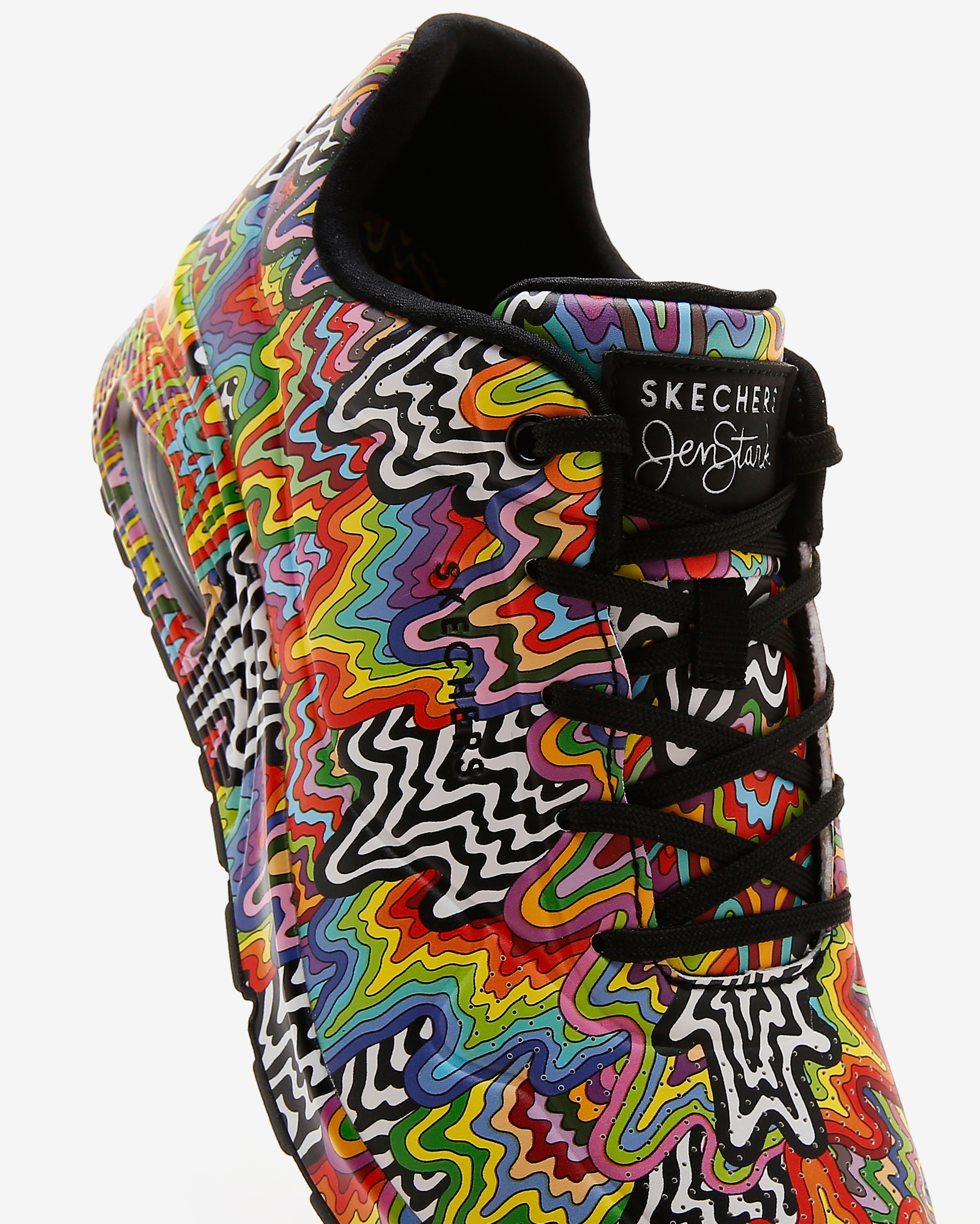 • Skechers x Jen Stark ortak çalışmasından saya üzerinde sanatçının psychedelic damla tasarımı yer alıyor.