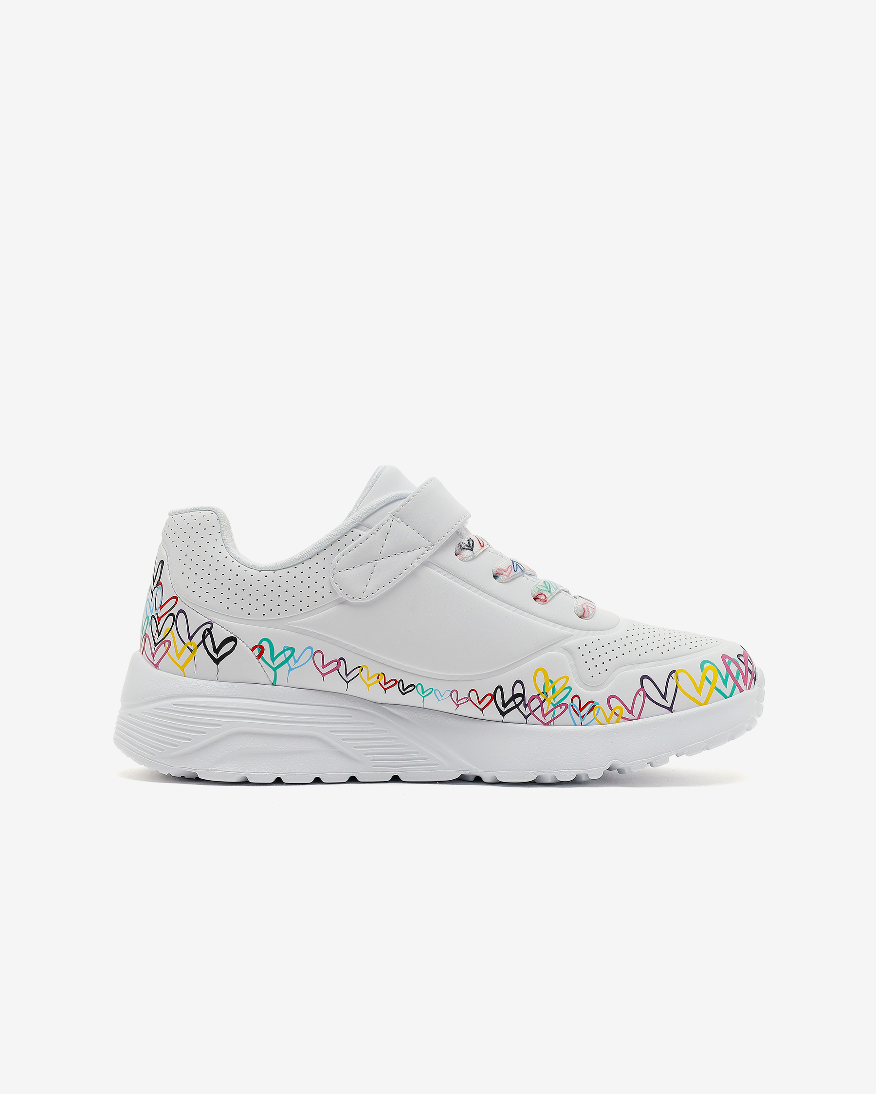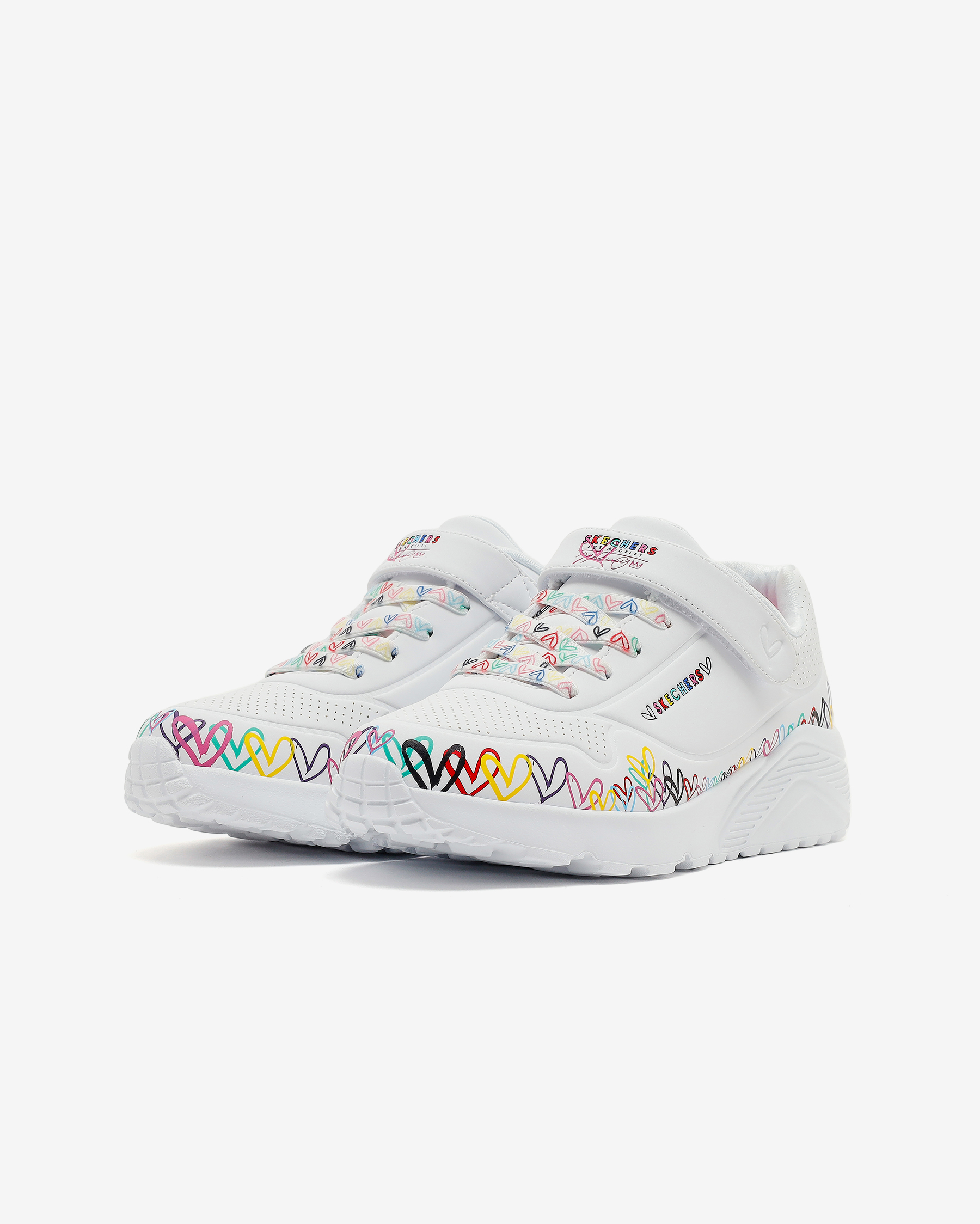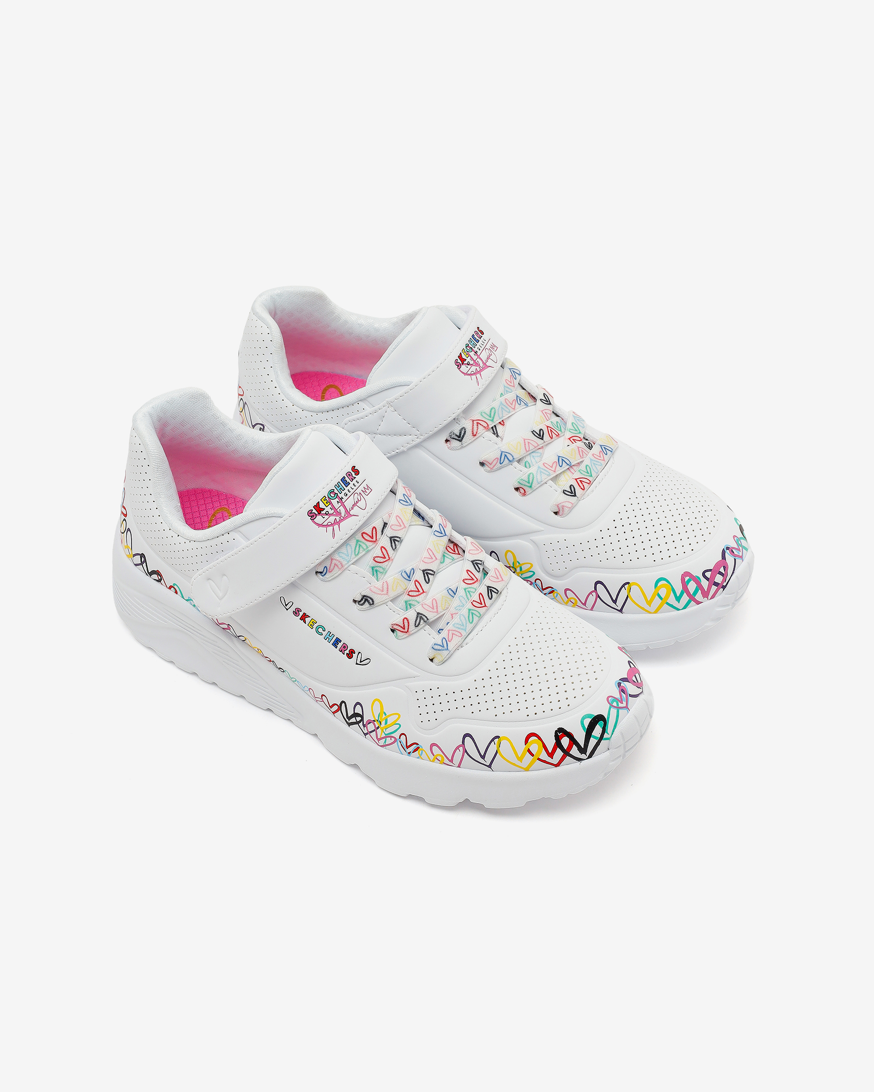 Skechers Street™ x JGoldcrown: UNO Lite - Heart Craze Kız Çocuk Sneakers – Sanatla Buluşan Günlük KonforDünyaca ünlü mural sanatçısı James Goldcrown’un ikonik #Lovewall kalpleri, Skechers Street™ x JGoldcrown iş birliğiyle enerjik bir stile dönüşüyor. UNO Lite - Heart Craze kız çocuk sneakers, günlük kullanıma uygun hafif yapısı ve rahatlığıyla öne çıkarken, yaratıcı detaylarıyla fark yaratır. Nefes alabilir üst yüzeyi ve pratik giyimi sayesinde hareketli günlerde konforlu bir deneyim sunar. Okuldan oyun saatine uzanan tempoda adımların akıcı ilerlemesine yardımcı olur.