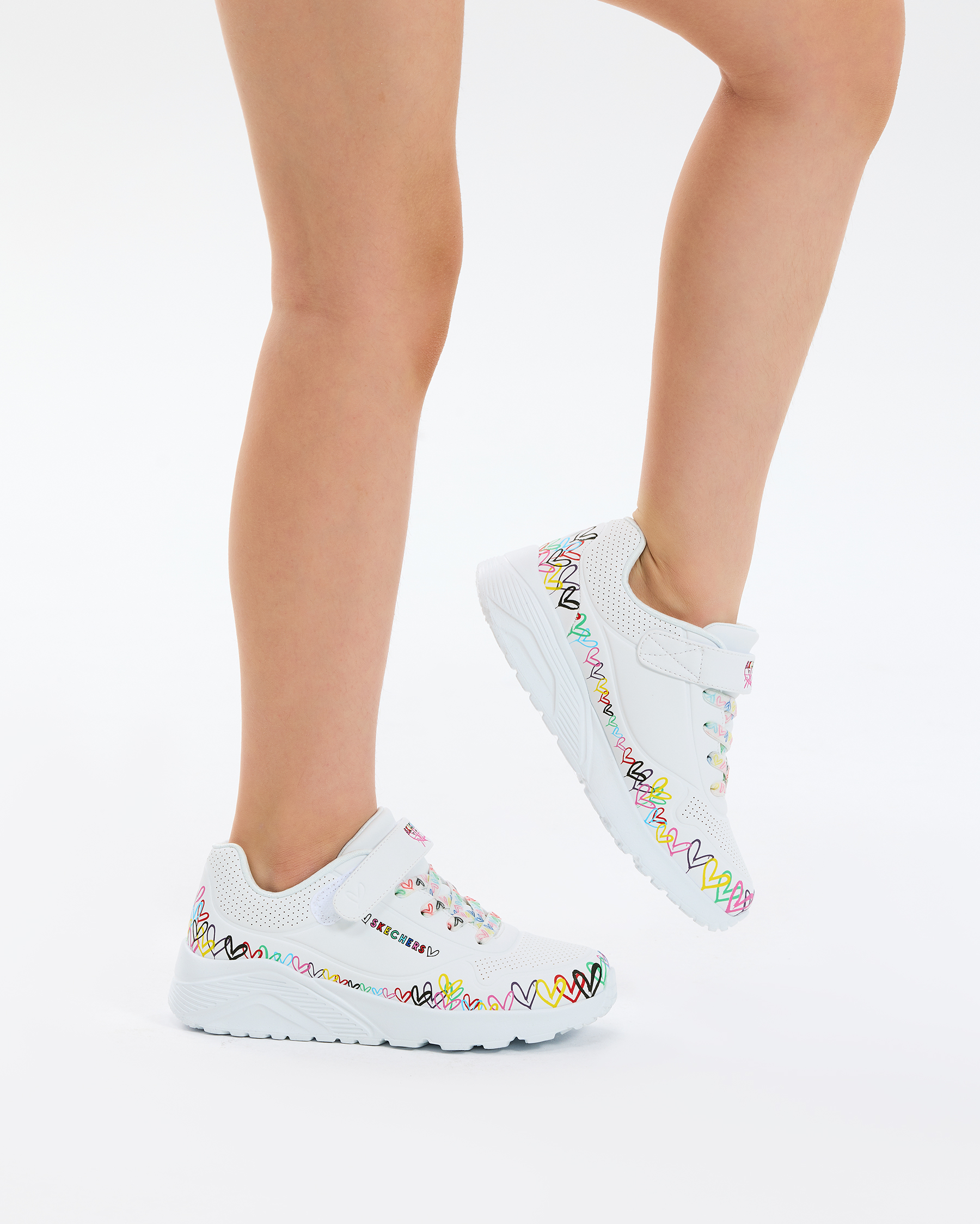 Skechers Street™ x JGoldcrown: UNO Lite - Heart Craze Kız Çocuk Sneakers – Sanatla Buluşan Günlük KonforDünyaca ünlü mural sanatçısı James Goldcrown’un ikonik #Lovewall kalpleri, Skechers Street™ x JGoldcrown iş birliğiyle enerjik bir stile dönüşüyor. UNO Lite - Heart Craze kız çocuk sneakers, günlük kullanıma uygun hafif yapısı ve rahatlığıyla öne çıkarken, yaratıcı detaylarıyla fark yaratır. Nefes alabilir üst yüzeyi ve pratik giyimi sayesinde hareketli günlerde konforlu bir deneyim sunar. Okuldan oyun saatine uzanan tempoda adımların akıcı ilerlemesine yardımcı olur.